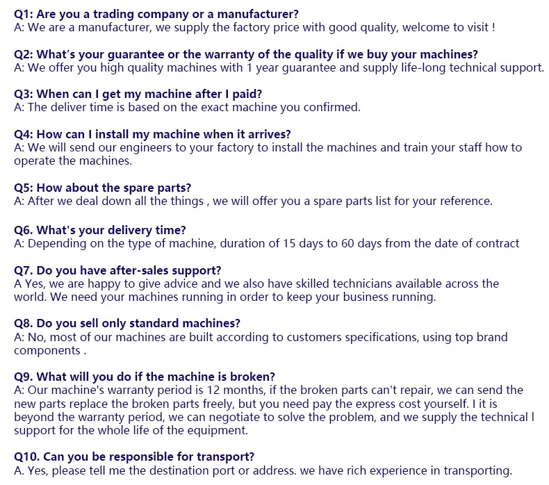| After-sales Service Provided: | Free spare parts,Field installation, commissioning and training; | Machinery Test Report: | Provided; |