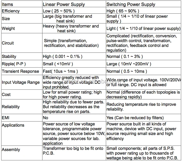 Comparison between Linear and switch mode power supply: