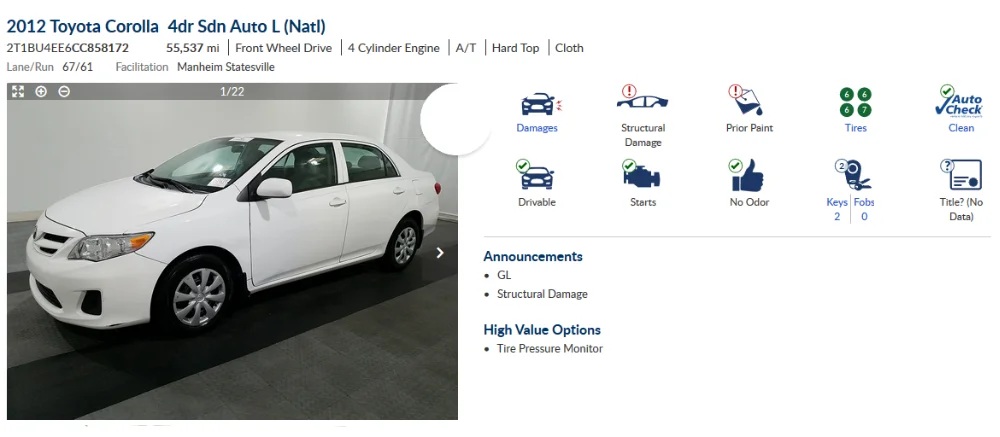 | Odometer: | 55,537 mi; | Transmission: | Automatic; |