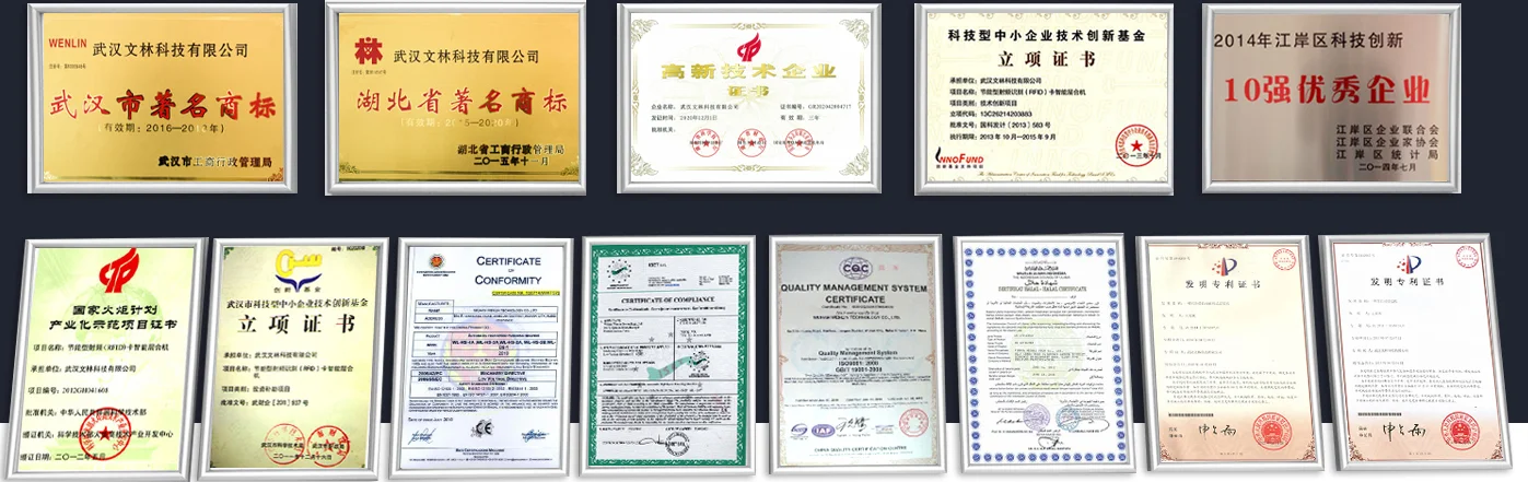 Wenlin passed CE and ISO9001 certificates, and obtained 12 national invention patents, nearly 100 patent for utility models and software copyright.