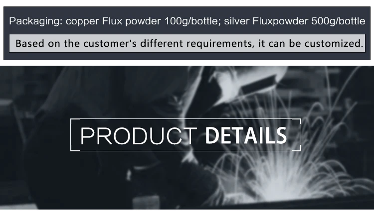 | Packaging Detail: | copper welding flux copper brazing flux package details: 1.Standard export seaworthy packing: with polyethylene film including drier, put them in carton. 2.According to the customer's different requirements packing; | Supply Ability: | 5800 Ton/Tons per Year supply OEM service; |