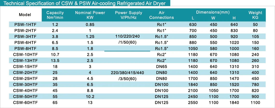 • Pressure dew point:2~10℃