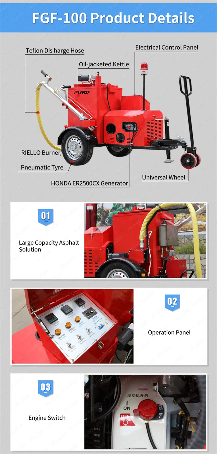 3.Imported diesel engine as heating source, the material is heated evenly, intelligent sensor detect temperature automatically;Joint Sealing Machine