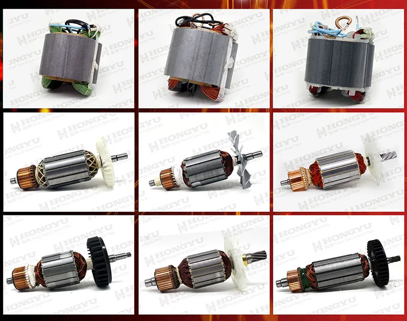 We supply all kinds of power tools armatures and stators suitable for famous brands. ALL our rotors and stators are 100% copper making and most of them by automatic winding machines with high quality process. We also have handmade process for big armature and stators. All our products are under several strict inspections to insure highly stable performance. We have more than 1000 types of these spare parts, also we can produce according to your samples requirements. 220V-240V, 110V, 120V are acceptable.