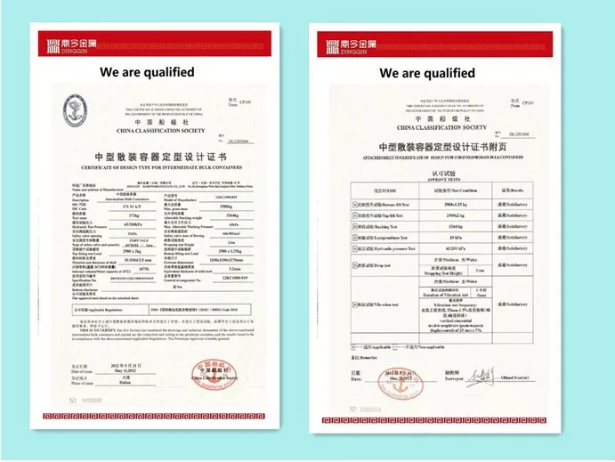 Suitable for liquid hazardous goods ,of density less then or equal to 2.0 of the UN Ⅱ,Ⅲ group |