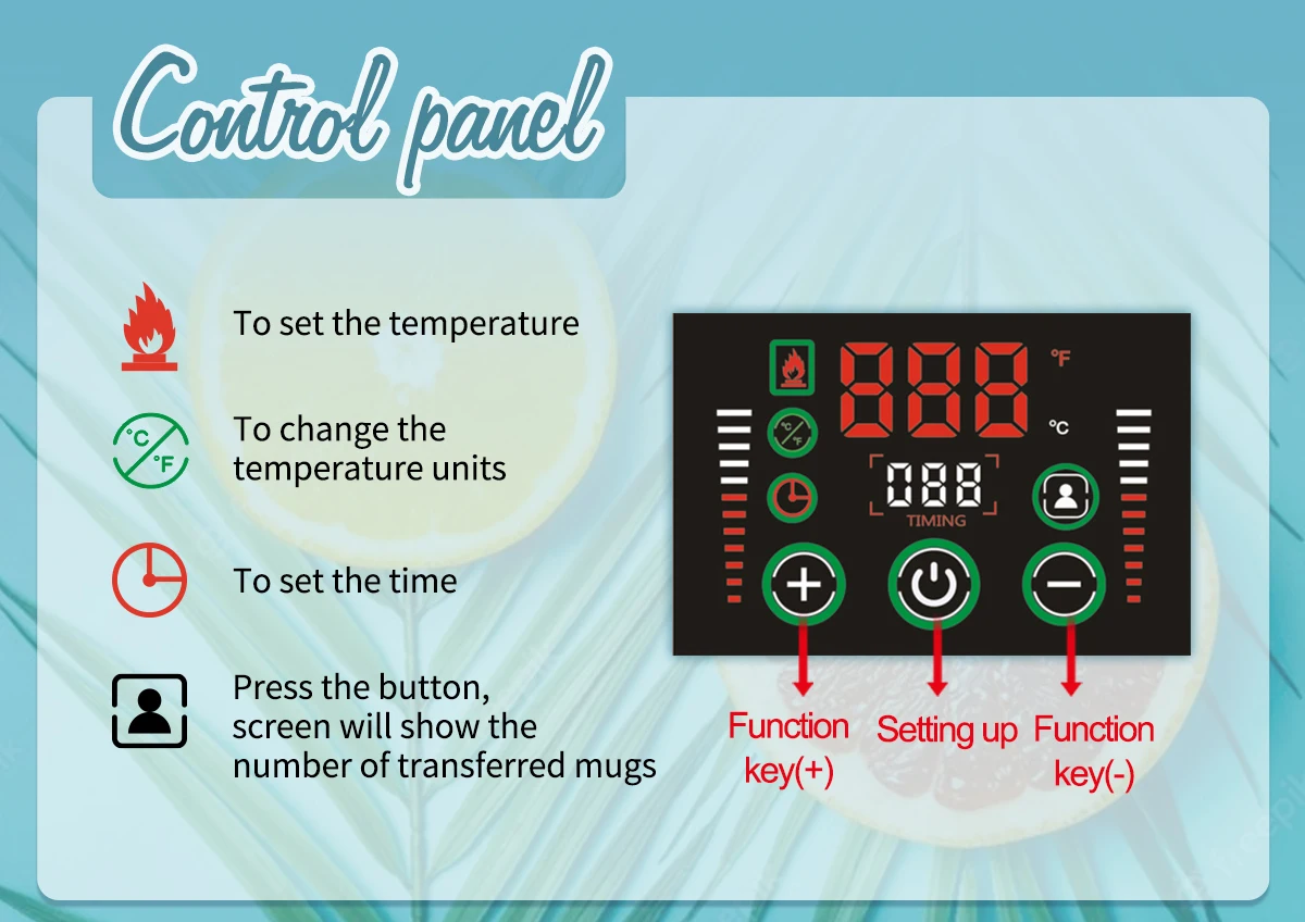 5.Press the "little person icon" to display the number of transferred mugs. Press "Start icon" to return to the interface.
