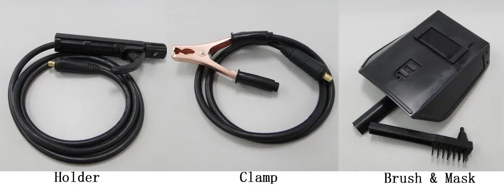 6)Supplied complete with electrode holder,earth clamp,welding cable,face mask and welding brush.