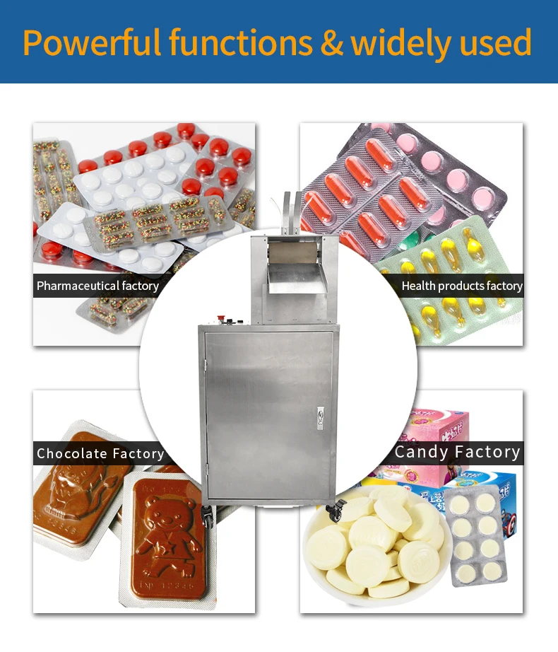 e)Unique retractable automatic cutting device, Able to adapt to a variety of different specifications of the blister packaging board.