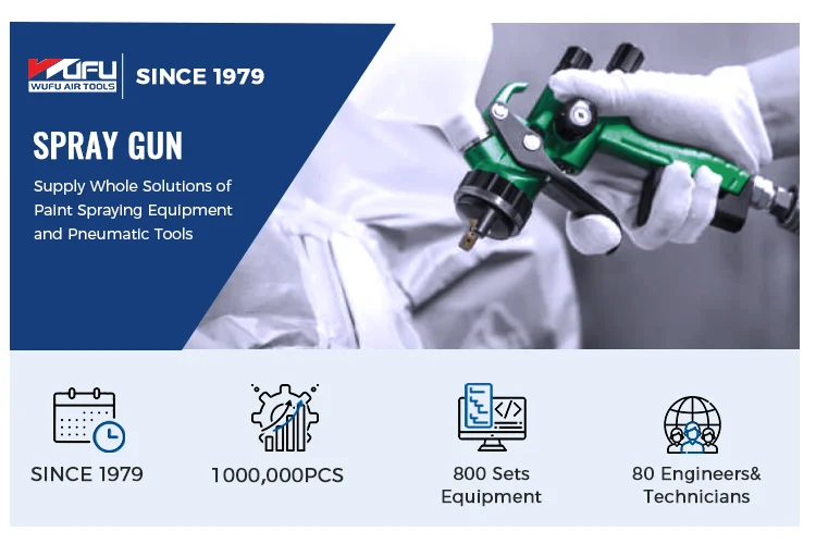Zhejiang Refine Wufu Air Tools Co., Ltd. is a leading air tool and spray gun manufacturer. We specialize in the export of spray guns, nail guns, and sandblasters. Our goal is to provide high quality products at competitive prices, and top-notch service to customers around the world. Established in 1979, we have factory space totaling more than 40,000 square meters. With fixed assets valued at USD19,000,000 and more than 500 employees, we have a production capacity of more than 10,000,000 pieces per year. We have an annual turnover of USD20,000,000, with 90% of our products exported to Europe, America, Southeast Asia, Africa, South America and the Middle East. We are ISO9001, CE, and GS certified and strictly adhere to their quality specifications.