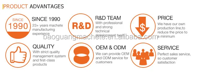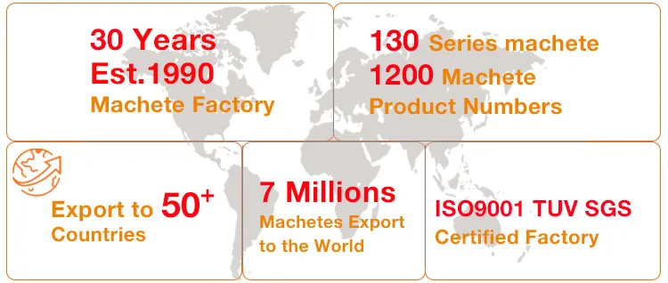 Established in 1990, the factory specialises in the manufacturing various sugarcane machetes, with capacity of punching, heat treatment, polishing and assembly. The factory has passed 1S09001 certificate.Advanced processing methods and high technologies guarantee high quality. With the great efforts of all the staff members, the factory has become a famous large- scale professional machete enterprise in the world, output over USD12 millions per year.