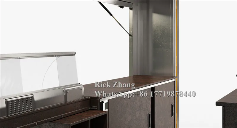 Standard equipment inside | - Stainless steel working table - Under-table cabinet - Customized sockets - Double water sinks & water tanks - Light * 1 - Electric box * 1 - Customized sockets * 6 | ||||||