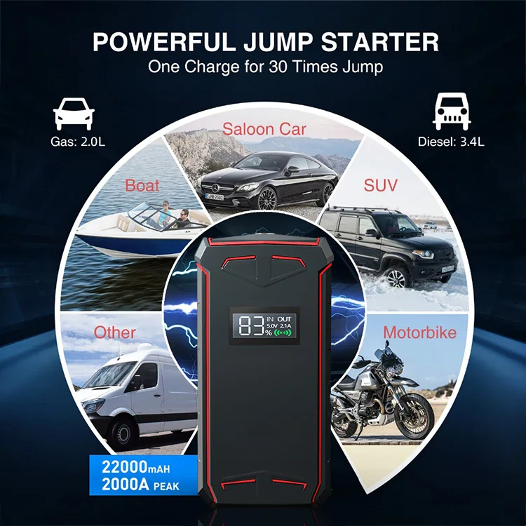 | Supply Ability: | 10000 Set/Sets per Week multifunctional power bank car jump starter; | Operate temperature: | -20℃-60℃; |
