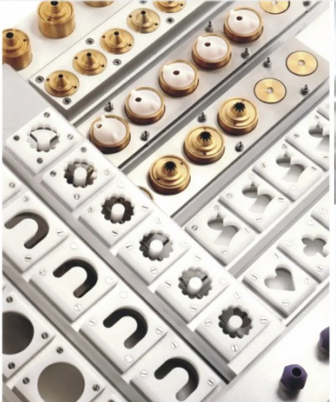 It is a kind of shape machine which can produce many kinds of unique design snacks and cookies dry base by squeezing out and taking shape the dough and has characteristics of modern techniques,compactstructure,multifuction ,simple
