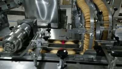 Flow Packing Machine connected with sandwich machine.