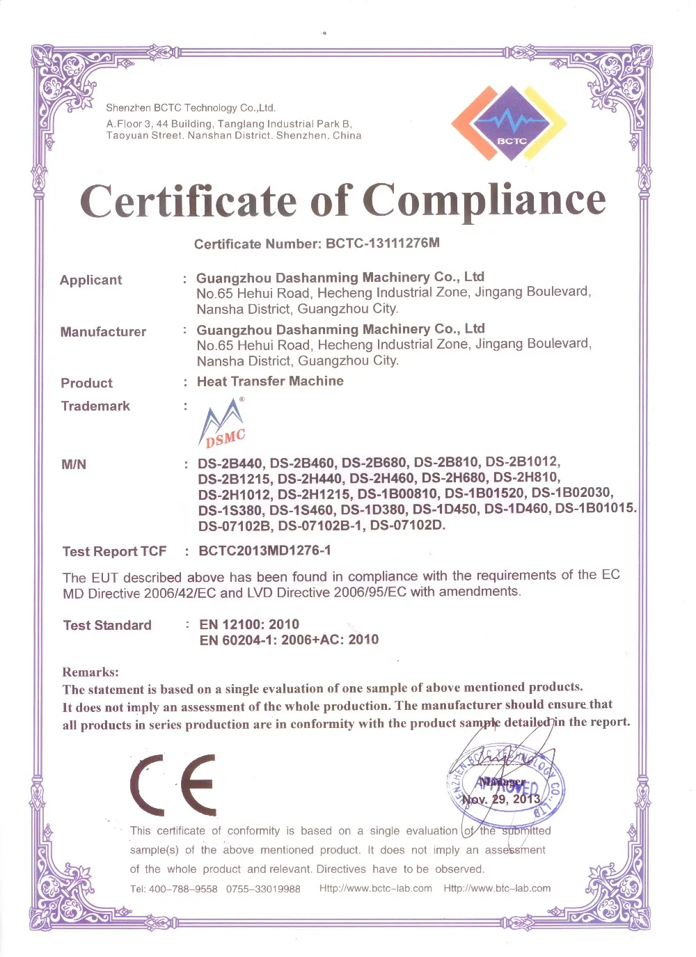 5. Acompany with CE certification