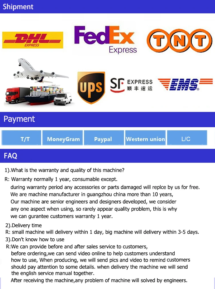 1.warranty:3 years quality guaranty,the machine with main parts(excluding the consumables)