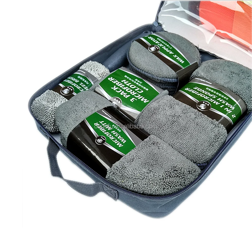 Packaging list | 3 pcs microfiber towel , 3 pcs waxing pad , 1 pc mitt , 1 pc sponge , 1 pc brush |