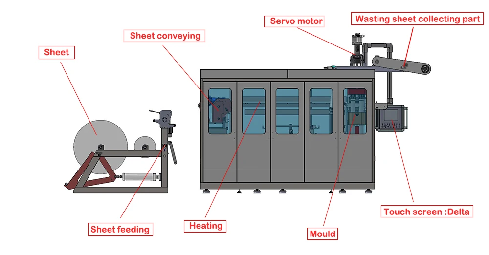 | Application: | Cups/bowls/dishes/plates/trays/covers/lids/containers making machine; | Production Speed(Cycles/min): | 30; |
