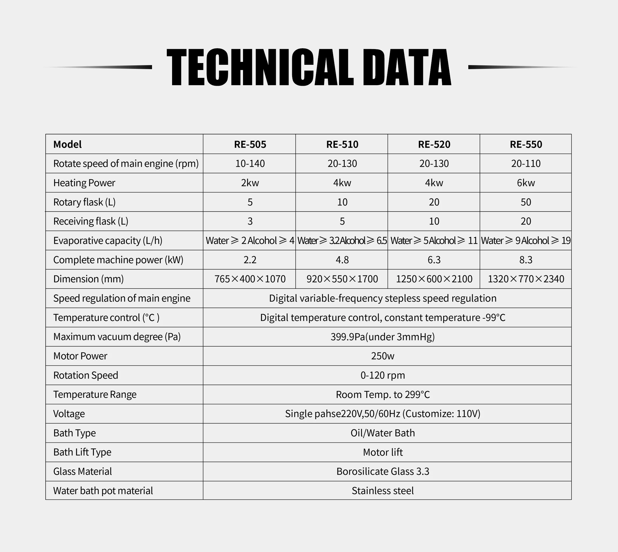 | Evaporation Flask: | 20L; | Condition: | New; |