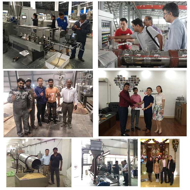 Our main products line include snack food extrusion machine, fish feed processing line, Pet food extrusion line, soya meal/meat processing machines, industrial micro wave oven, packaging machines, rice cake machine etc... Most importantly, we also provide formulas, technology supports, machine inspection service, etc.