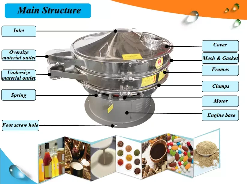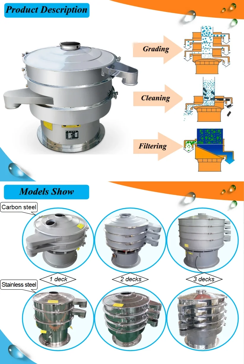 | Product name: | Wheat flour vibrating screen sieve machine; | Diameter: | 400mm-2000mm; |