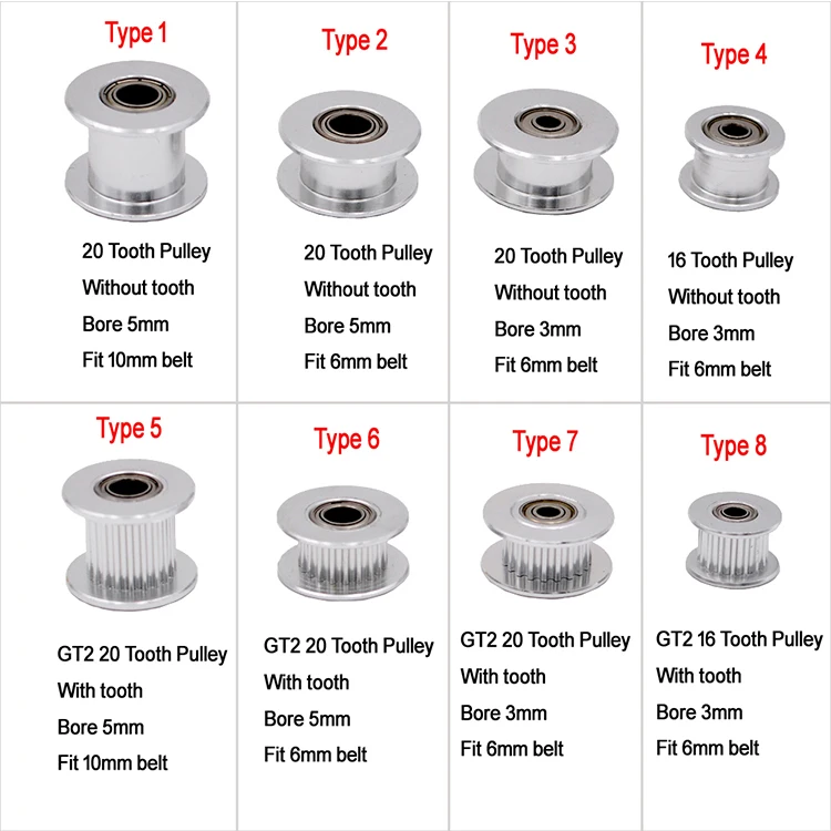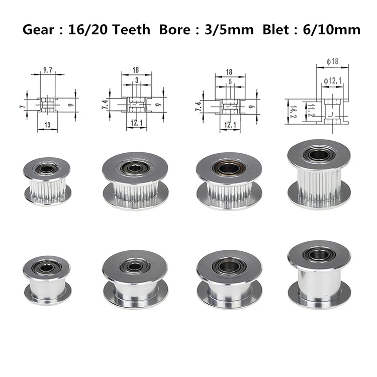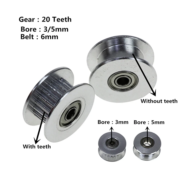 | Bore: | 3/4/5mm; | Product name: | 2GT 20Teeth Idler Pulley; |