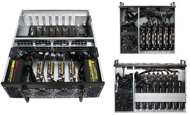 Clear Pictures for this Original Factory 8 & 12 GPU Mining Motherboard With 7 Fans PSU RAM Graphic Card Aluminum Ethereum Bitcoin Miner Machine Rig Case: