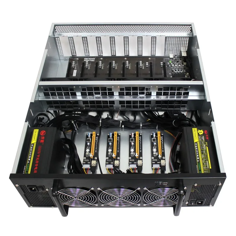 8gpu mining motherboard inbuild Intel CPU (55MM PCIE distance) + mining case + 4*fans + 1800W PSU + DDR3 Ram 4GB + 128GB SSD