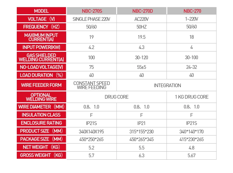 | Model o. | NBC-270D | NBC-270 |