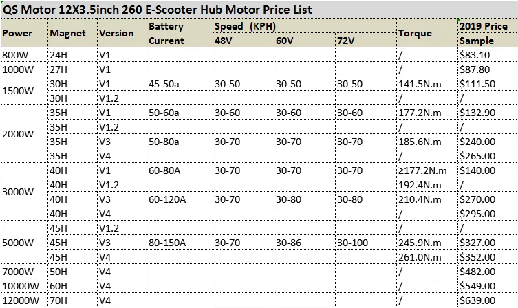 QS Motor 12inch 260 E-Scooter Hub Motor Price List