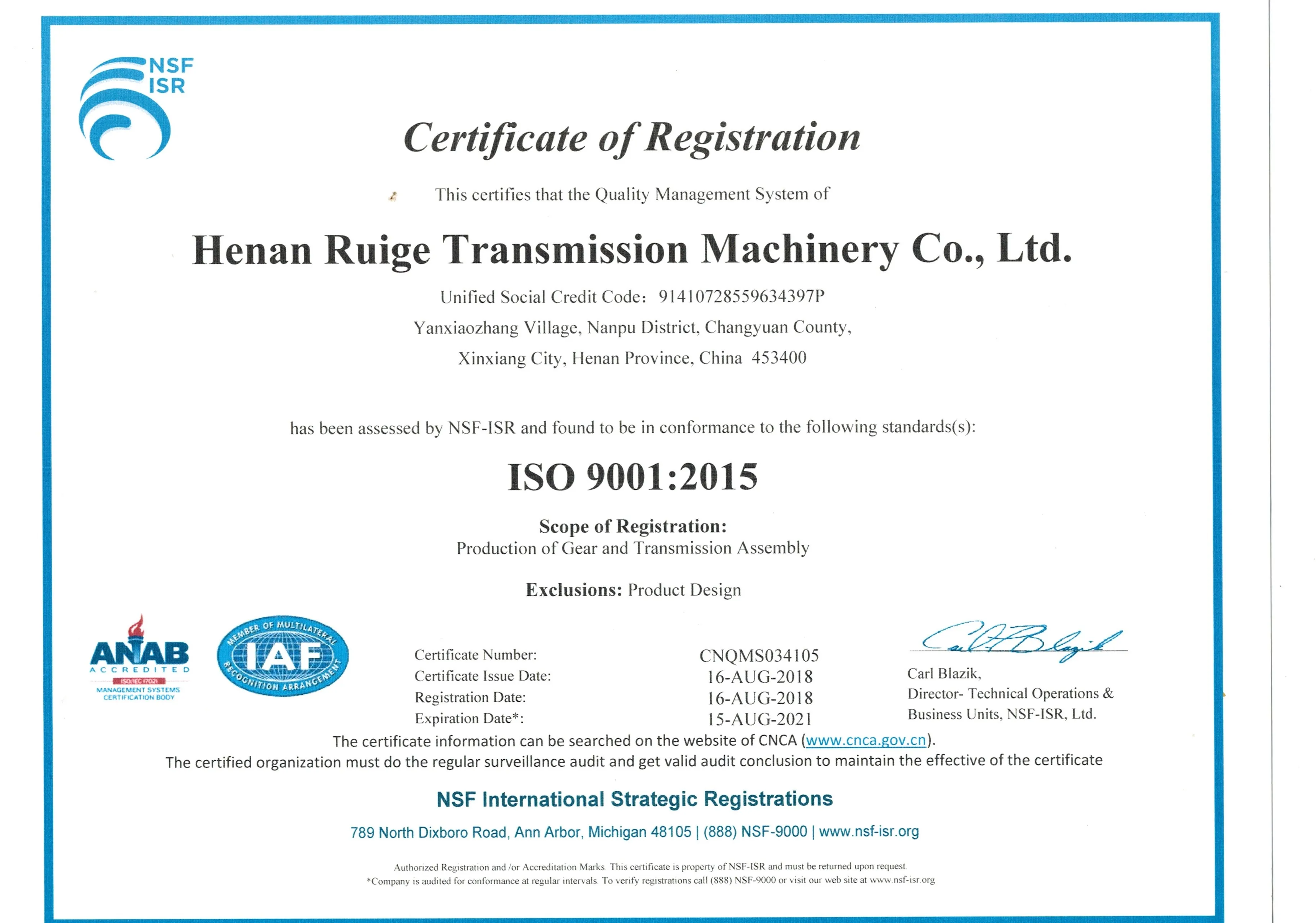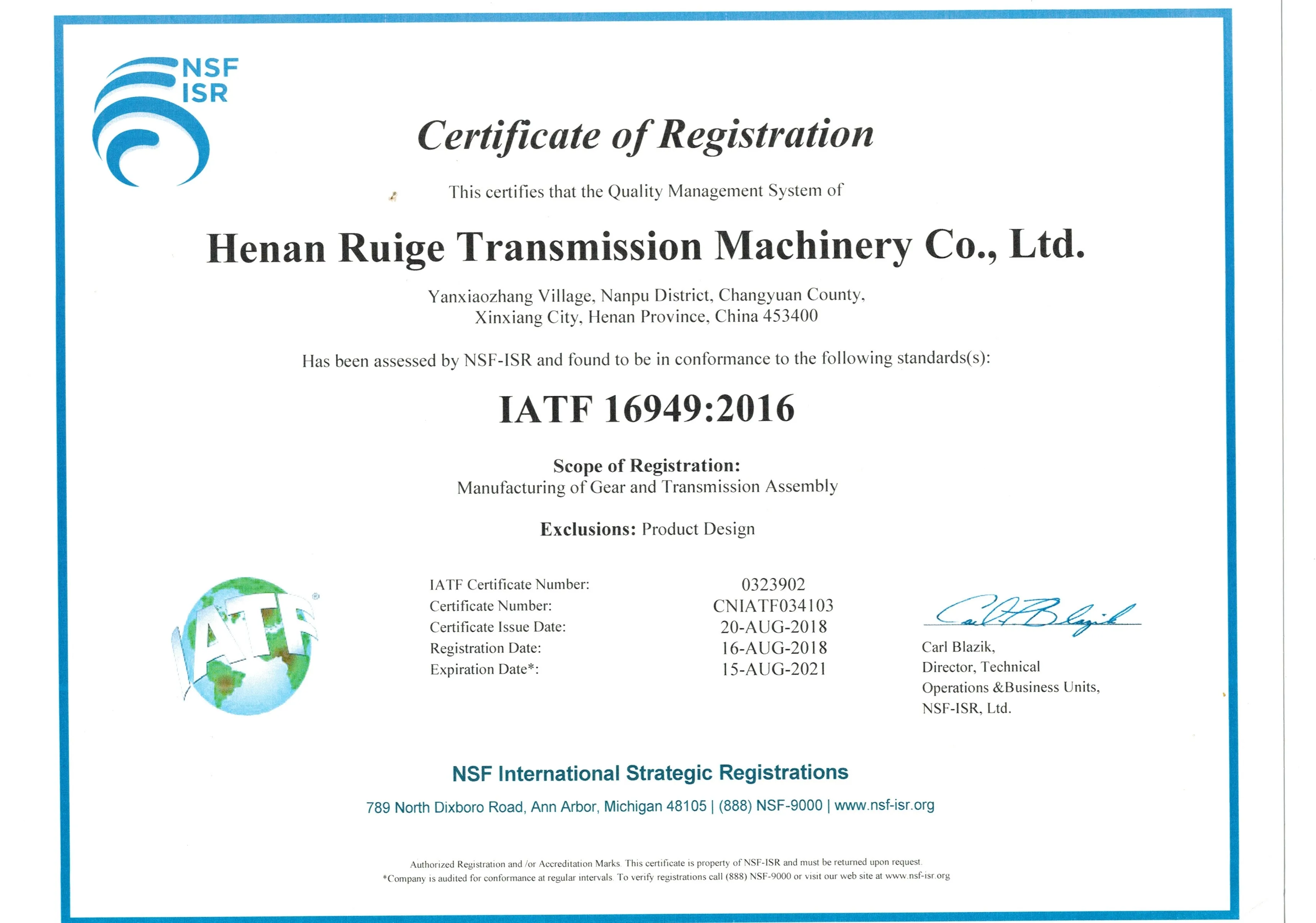 Our company has obtained a number of certifications such as: the ISO9001:2015, IATF 16949:2016 from NSF International Strategic Registrations, the certificate of scientific and technological achievements , the Advanced Technology Enterprise and Henan province science and technology type small and medium enterprise certificate.