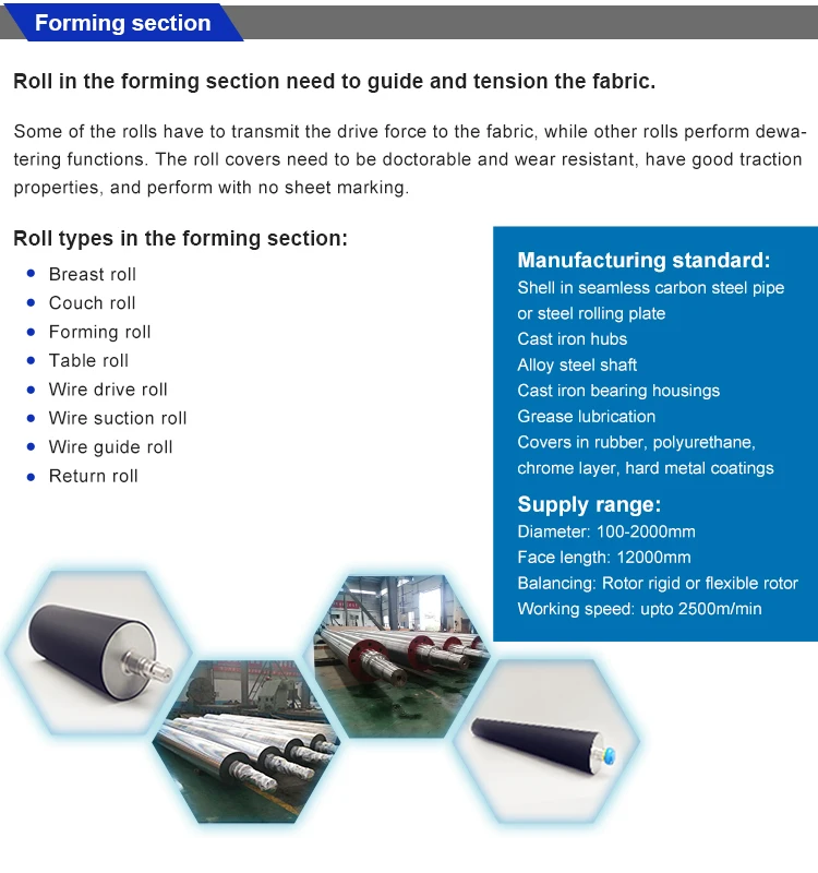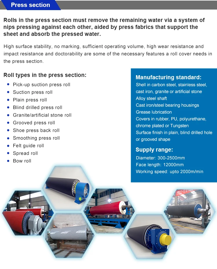 Paper Making Roll Types | Forming Section / Press Section / Dryer Section / Sizing Section / Calender |