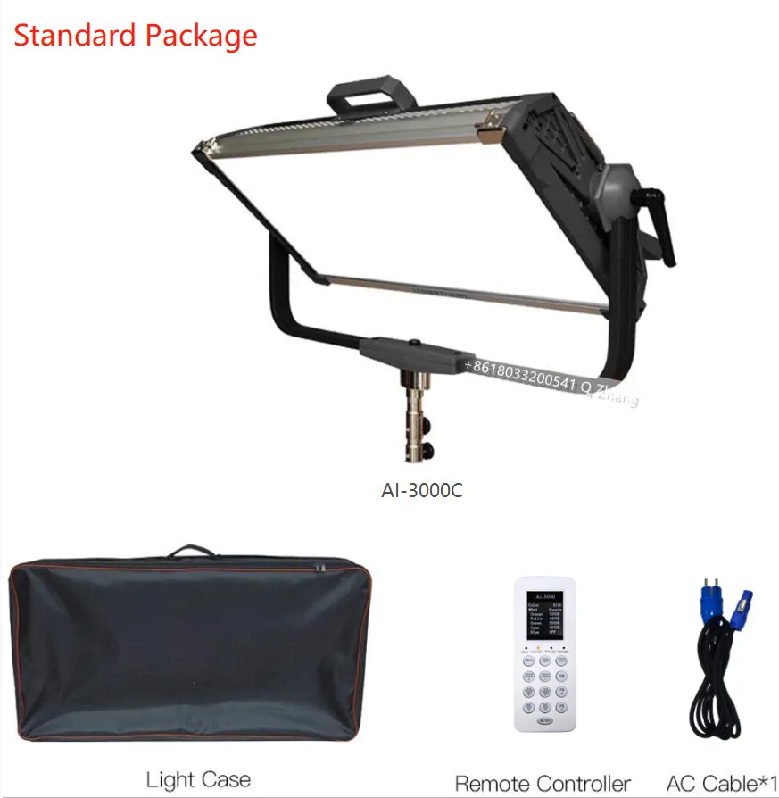 Film lighting equipment AI-3000C is supported to the vibrant color selection. They are not only fully adjustable color from 2800k to 9990k, but also configured for using DMX, remote controller and phone App. Moreover, they manipulate 12 effects without the need for a lighting console or hours of programming. Each effect has several parameters that allow for customization of the effect to fit your needs.