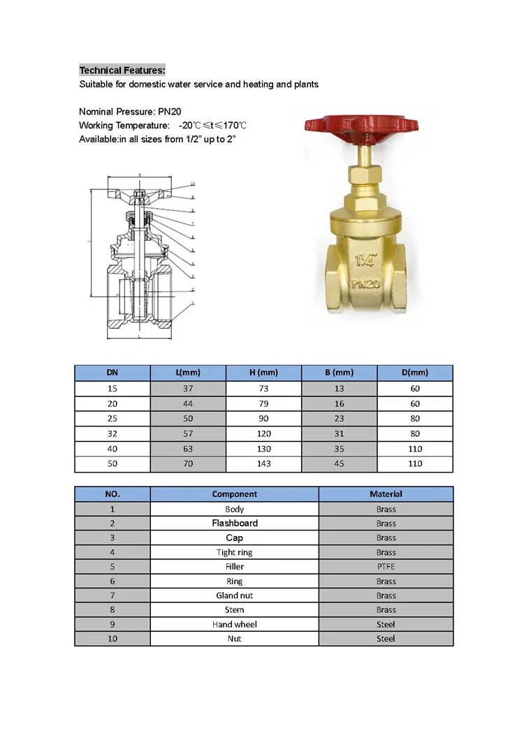 | Type: | Gate Valves; | Body material: | Brass; |