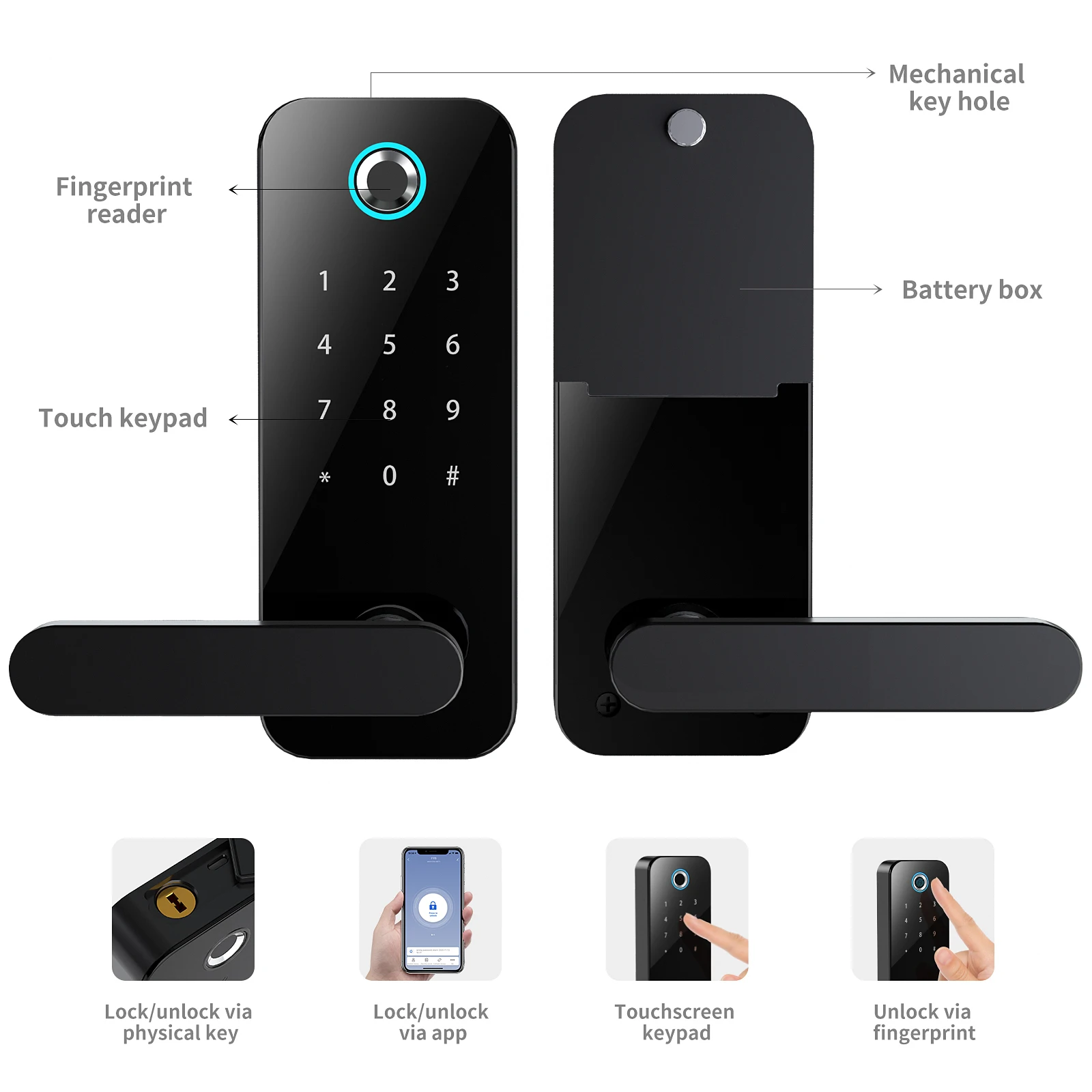 Multiple Ways To Unlock | Smart lock supports custom apartment home hotel locks. APP,fingerprint,password, mechanical key to unlock,flexibility unlock. Keyless Entry Door Lock easy to use it whether children or the elder. | ||||||