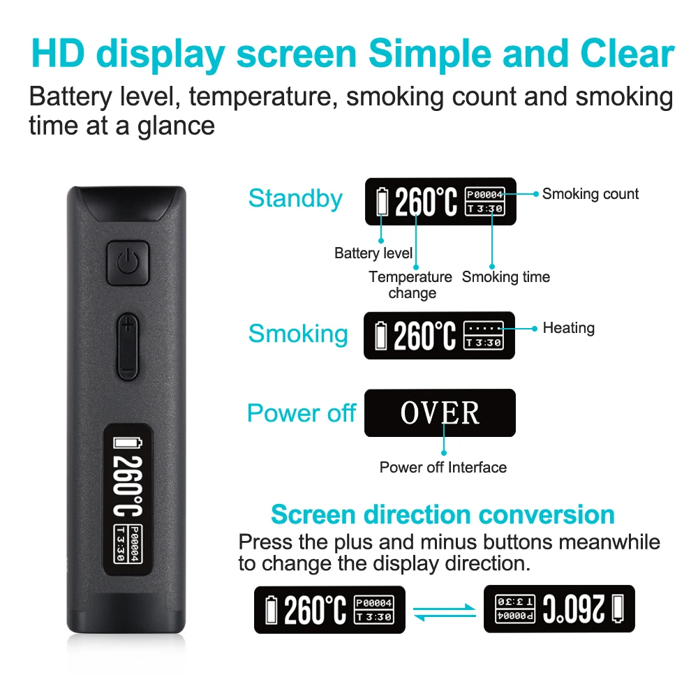 | size: | 48*24.5*80mm; | Feature: | heating tobacco with adjustable temperature and smoking time; |