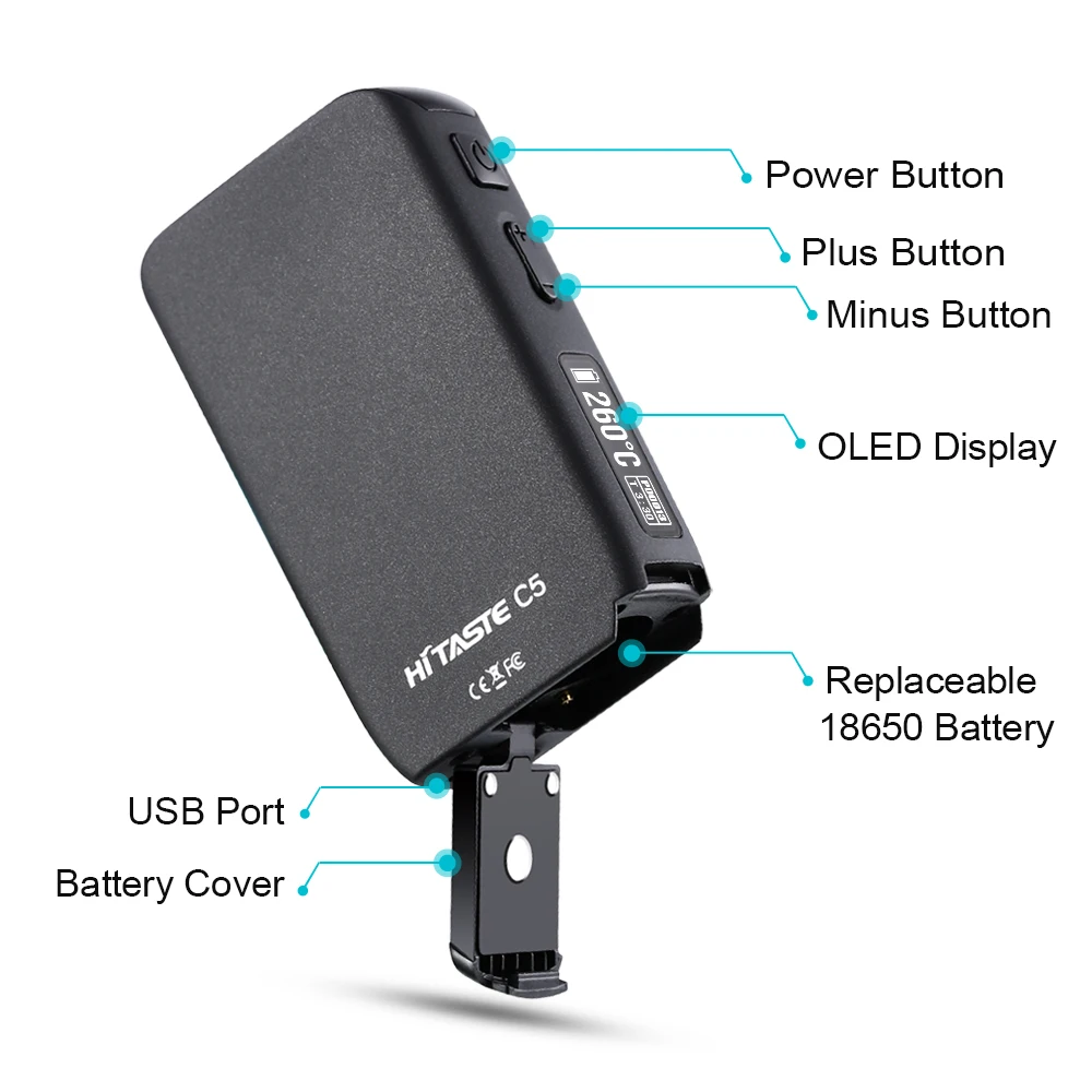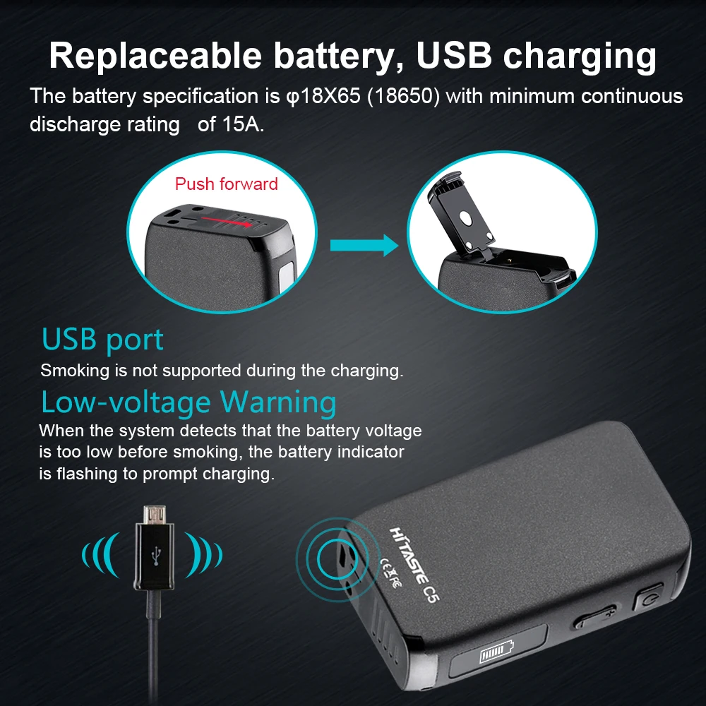 | Product name: | New smoking electronic cigarette HiTaste C5 heating tobacco device; | Battery Capacity(mAh): | 2600; |
