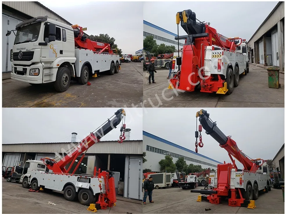 Shacman 12 wheeler crane towing Wrecker Truck for Sale can be shipped by flat rack container or by bulk/ro-ro ship