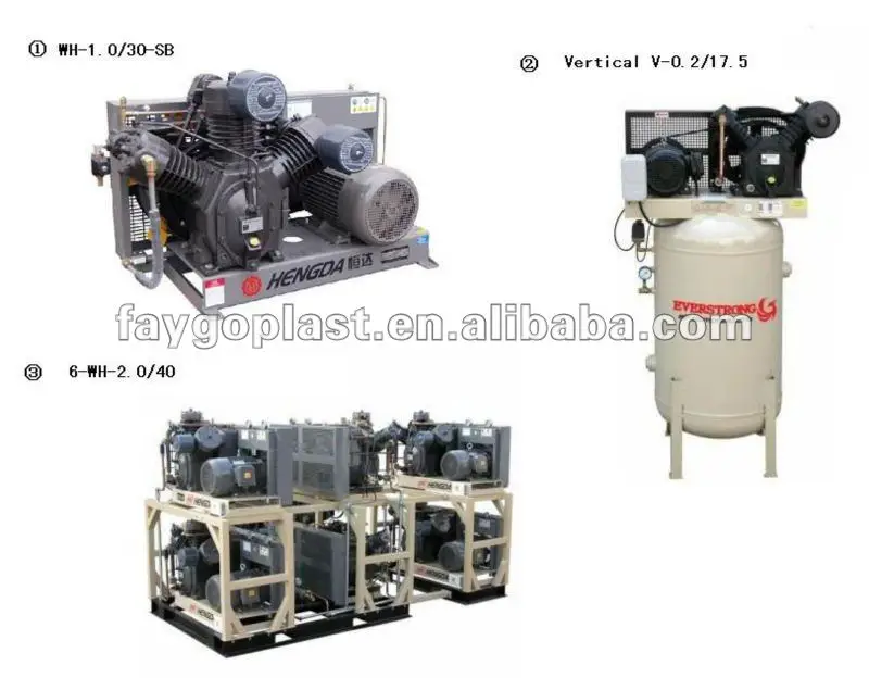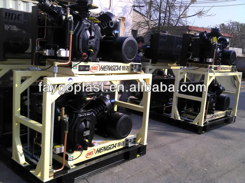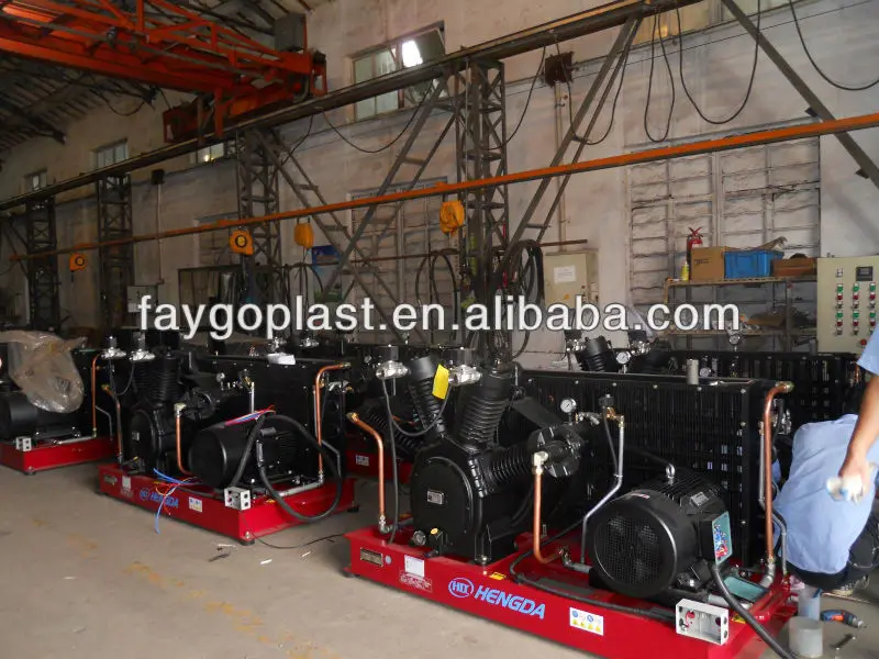 High efficiency,high performance engergy saving,reliability and long lift are the principle characteristics o HENGDA high pressure air compressor.The Free air delivery from 0.15m3/min to 6.0m3/min.HENGDA makes a very wide model of rang of compressor to meet a wide rand of industrial application and requirement , especially for PET BLOWING Industry. Every machine is equipped with starting,unloading solenoid valve,auto condensate drain valve and advanced capacity control to make machine to operate safe and stable.