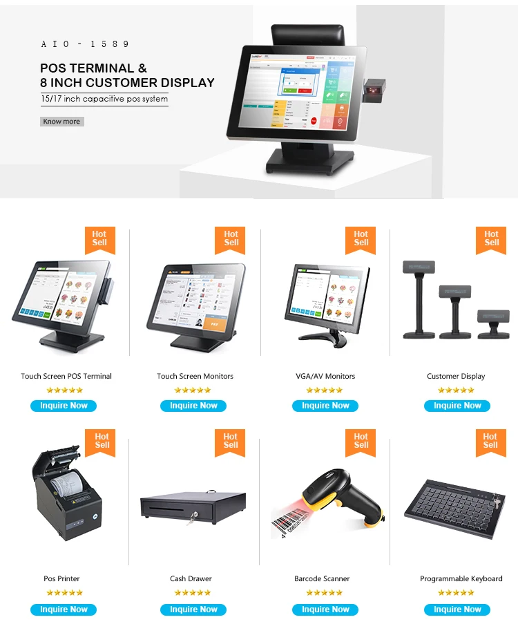 POS Terminal,Touch Screen Monitor,Thermal Printer,Barcode Scanner,Cash Drawer