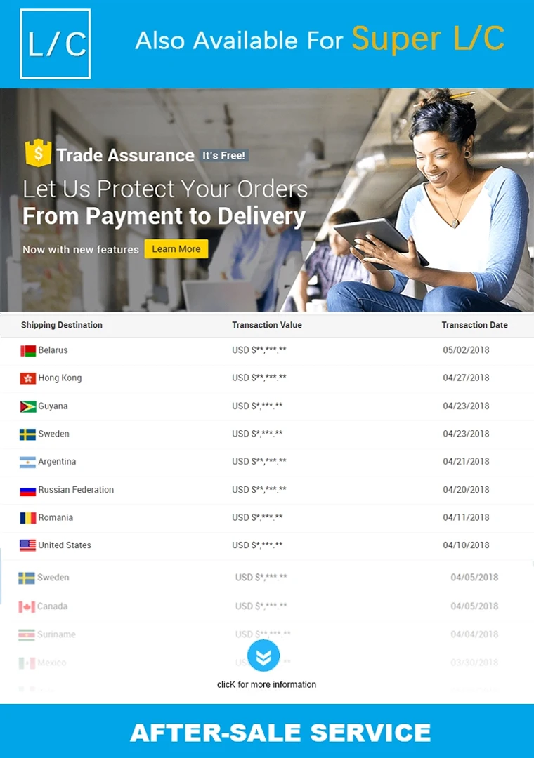 Accepted Payment Type: T/T,L/C,MoneyGram,Credit Card,PayPal,Western Union,Cash,Escrow;