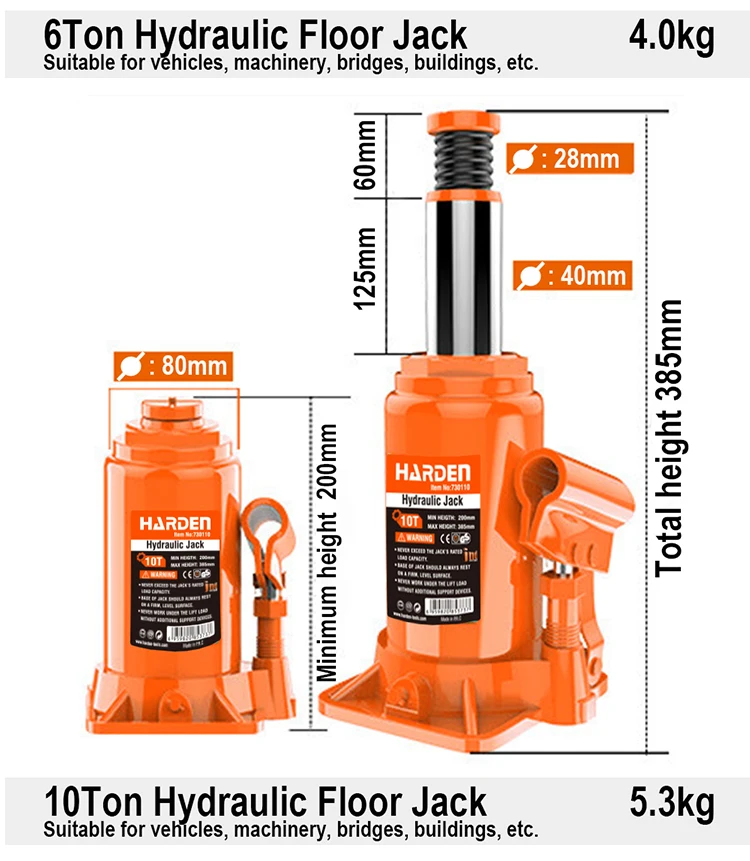 GS Approved 2-50 ton HARDEN lifting Car floor Jack Hydraulic Bottle Jack