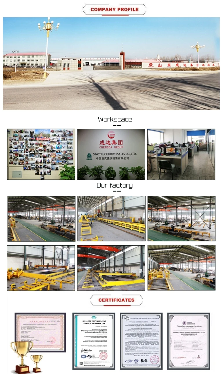 Shandong Chengda Auto Sale Co.,Ltd. established in 2005 is one of the qualified manufacturers of various trailers. Integrated production, scientific research & development and professional sales teams, all those advantages can provide the full service of trailers, semi-trailers, tractor head, dump truck, engineering machinery and trailer parts, our company is a leading provider in this industry, with annual export value reaching above 50million dollars and revenue almost 600 million yuan RMB.With high standard machinery and automatic equipment, powerful R&D team and elite sales team, We have built a long business relationship with many world famous enterprises such as SINOTRUK\SHACMAN\FAW\DFAC\XUGONG Group\LIUGONG Group\SEM Group etc. Besides mature after-sale systems, we can meet different needs of customers both home.