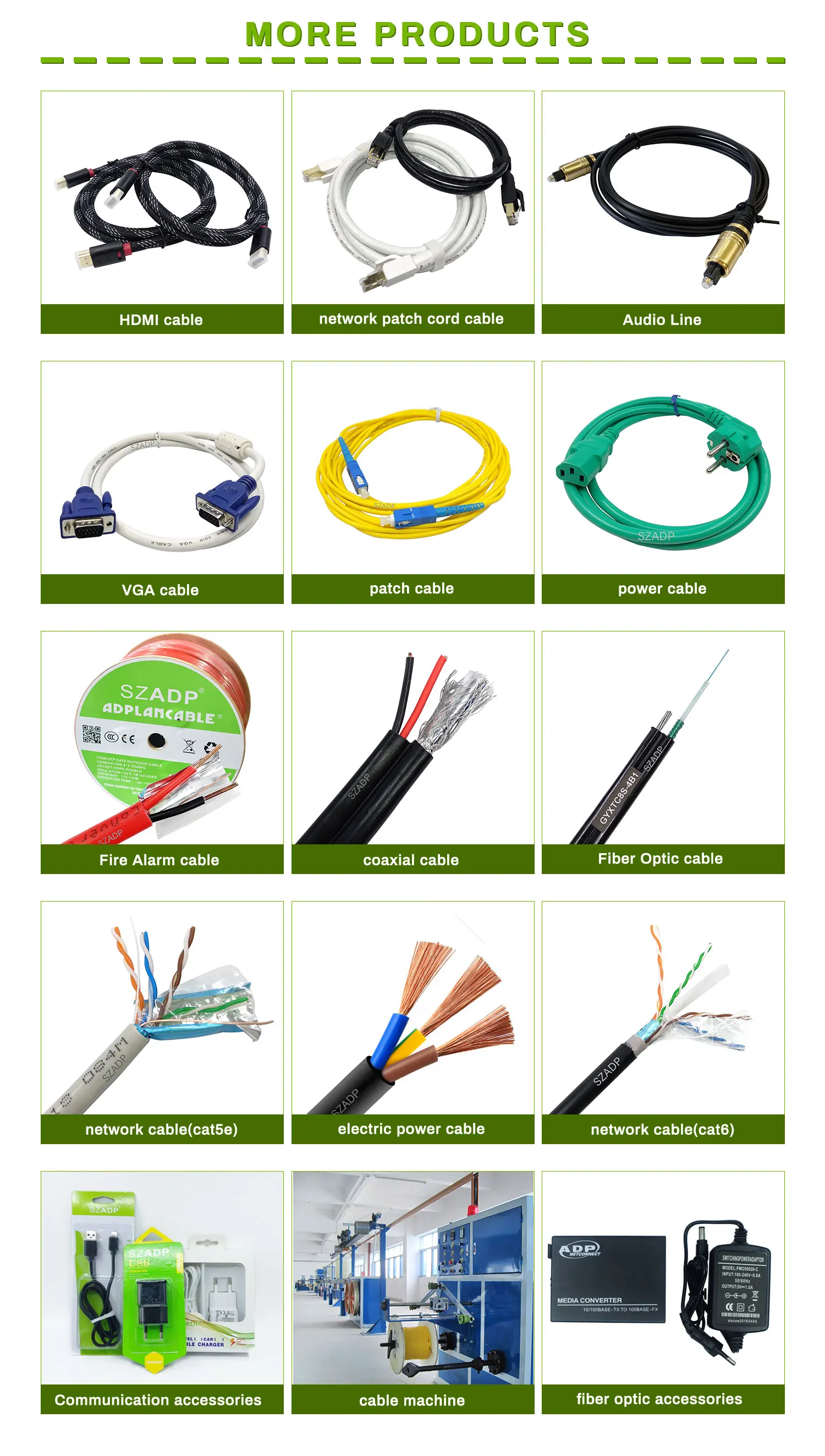 HUIZHOU ADP OPTICAL COMMUNICATIONS CO.,LTD Founded in 2002, Sales department was established in Shenzhen and Guangzhou the company has been committed to the professional manufacturing of communication cables, communication optical cables, security cables, power cables and communication accessories for more than ten years. In recent years, it has developed into cable machinery, cable materials, and cable production technology. One-stop high-quality supplier, the company's own brand SZADP has a large amount of stock, which can achieve payment to delivery for foreign agents and shorten the delivery time of customers. SZADP brand cables and communication accessories have first-class agents in various countries Business, has now developed into a popular hot-selling product