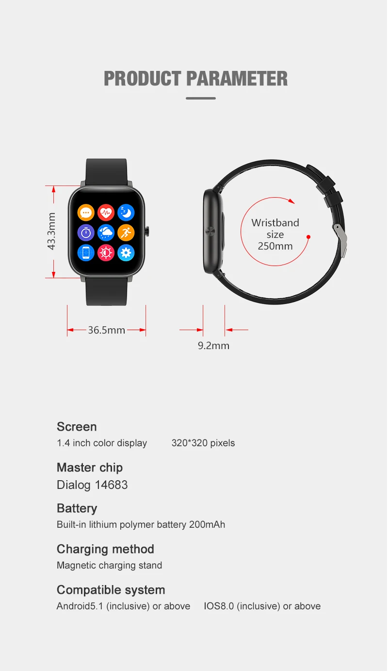 | Display Color: | Color; | Screen Size: | 1.4inch TFT 320*320; |