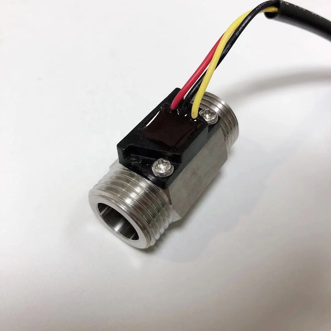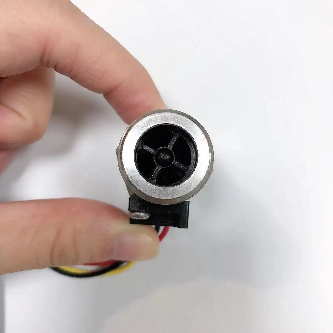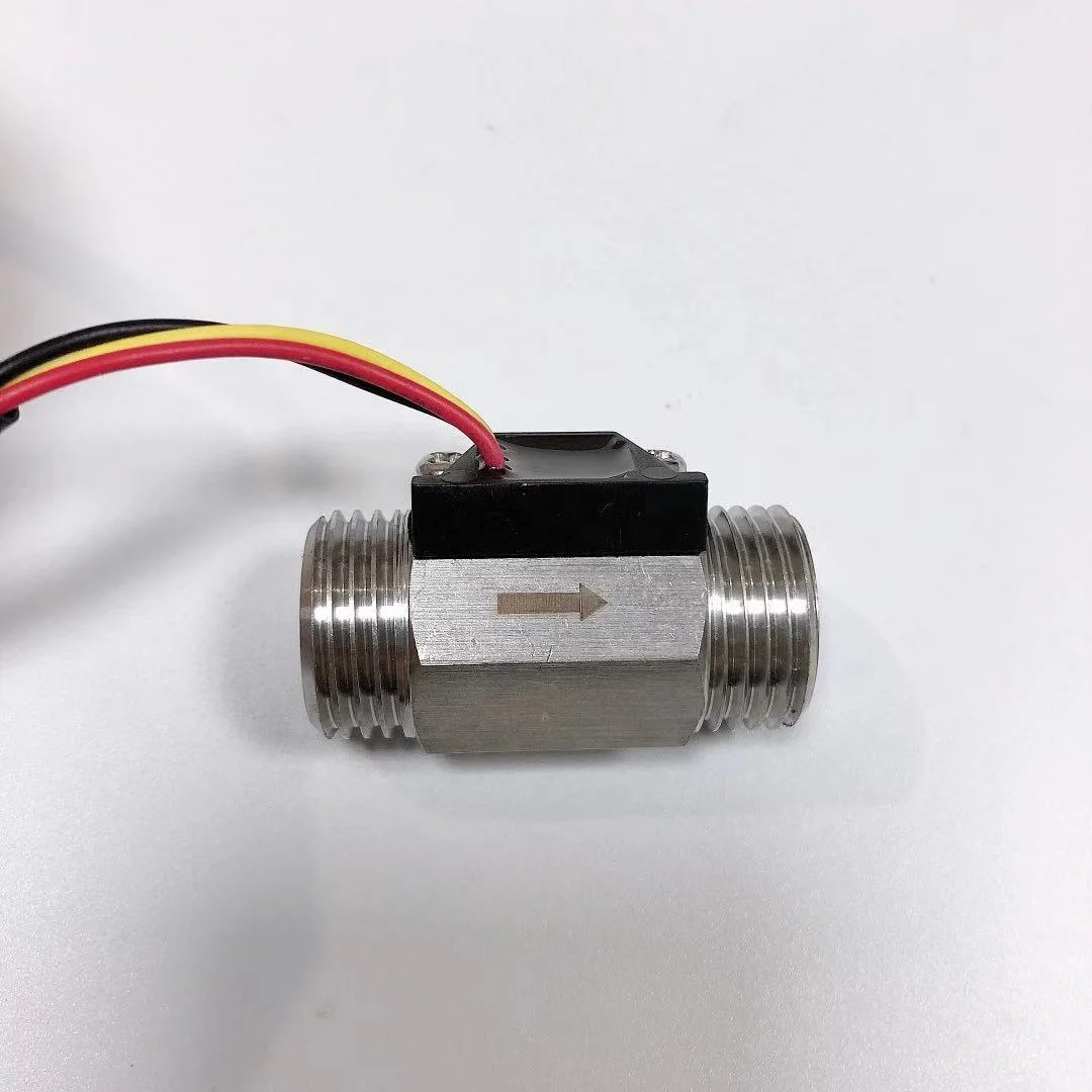 The water flow sensor is mainly composed of a brass copper body, a water flow rotor assembly and a Hall sensor.