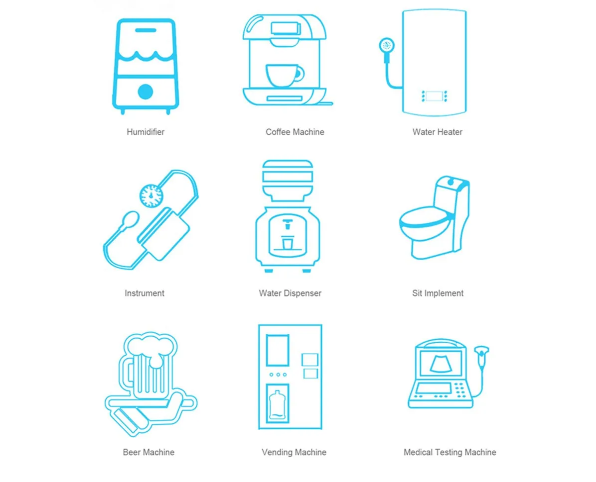 It is installed in various gas water heaters, electric water heater, washing machine, water machine, boiler, electromagnetic water heater, water control (integrated) machine, water machine, heat pump hot water engineering, the card management system of intelligent water meter, water meter, IC campus card sale water system, self sale (sell) water machine, water treatment water distribution equipment, dispensing equipment, cooling system, circulation system, intelligent heating equipment, mechanical equipment, instrumentation, pharmaceutical (agents) equipment etc.