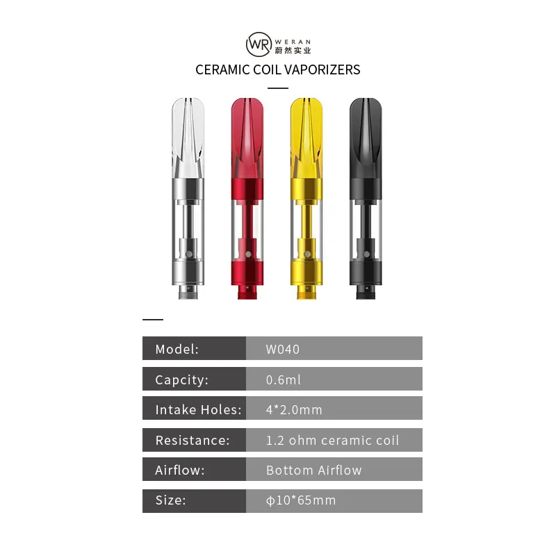 High Quality Custom Logo PCTG Mouthpiece Cermaic Coil CBD Cartridge 510 Thread Cartridge