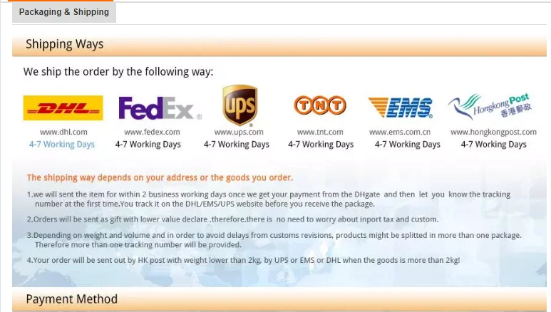 Shippment: DHL, UPS, Fedex, USA Special Line