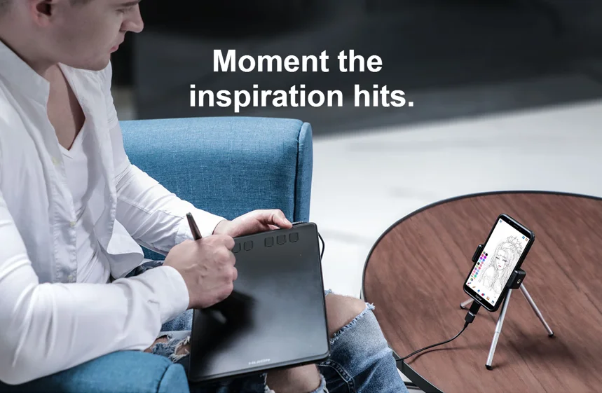 Only 8mm thick and weigh 227g, 6.3×3.9 inch sufficient working surface, easy to carry the art tablet around.
